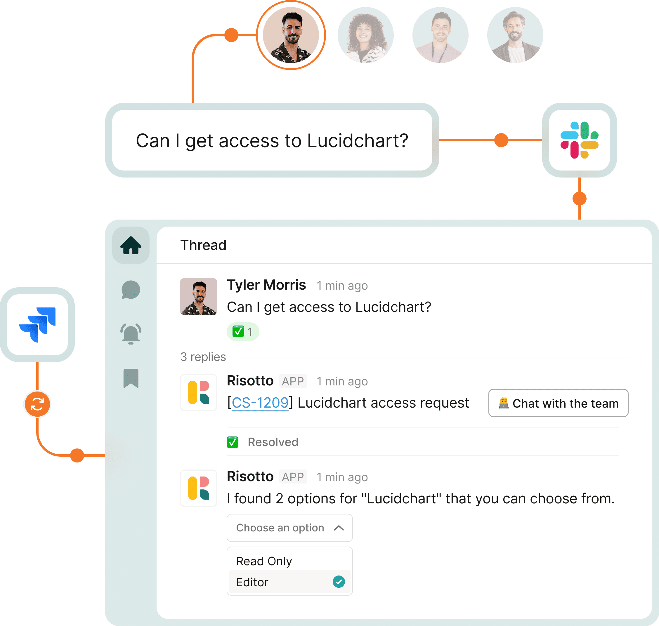 Risotto intelligently understands the intent behind the request. It confirms existing permissions, coordinates necessary approvals proactively, and automatically provisions access upon approval.