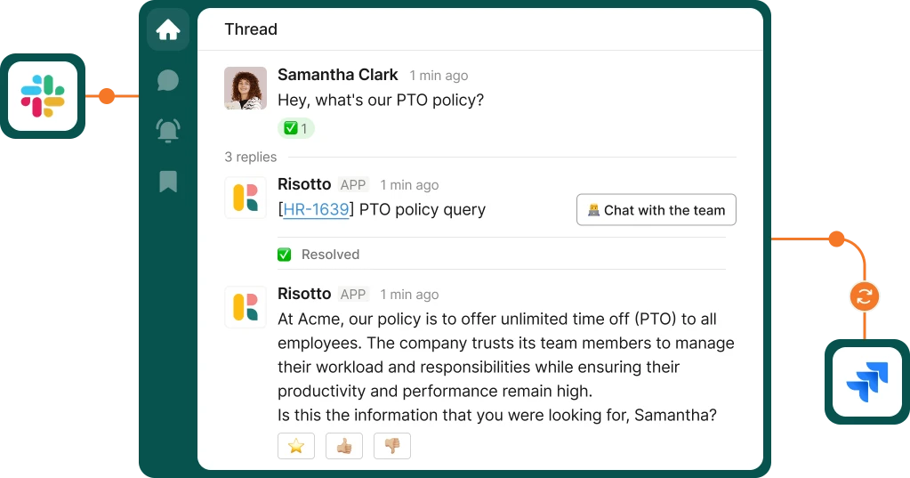 ❇️ Risotto integrates via seamless bi-directional sync with Jira, Freshservice, or Zendesk, and manages the entire ticket lifecycle behind the scenes