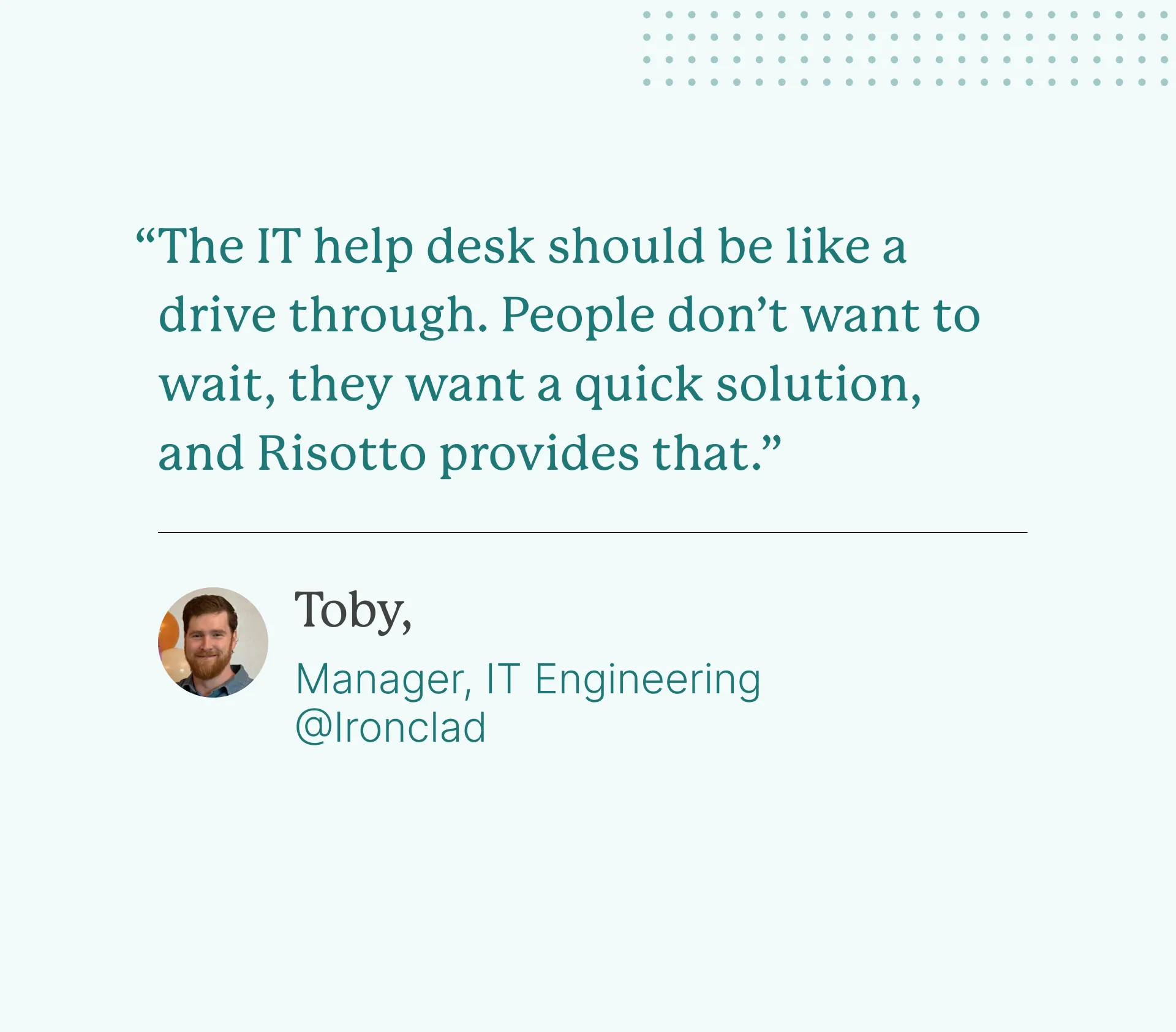 When Ironclad discovered Risotto, the contrast was immediately apparent. Instead of hesitant confirmation loops, Risotto demonstrated confidence in its decision-making, taking requests at face value and delivering instant resolutions when possible.