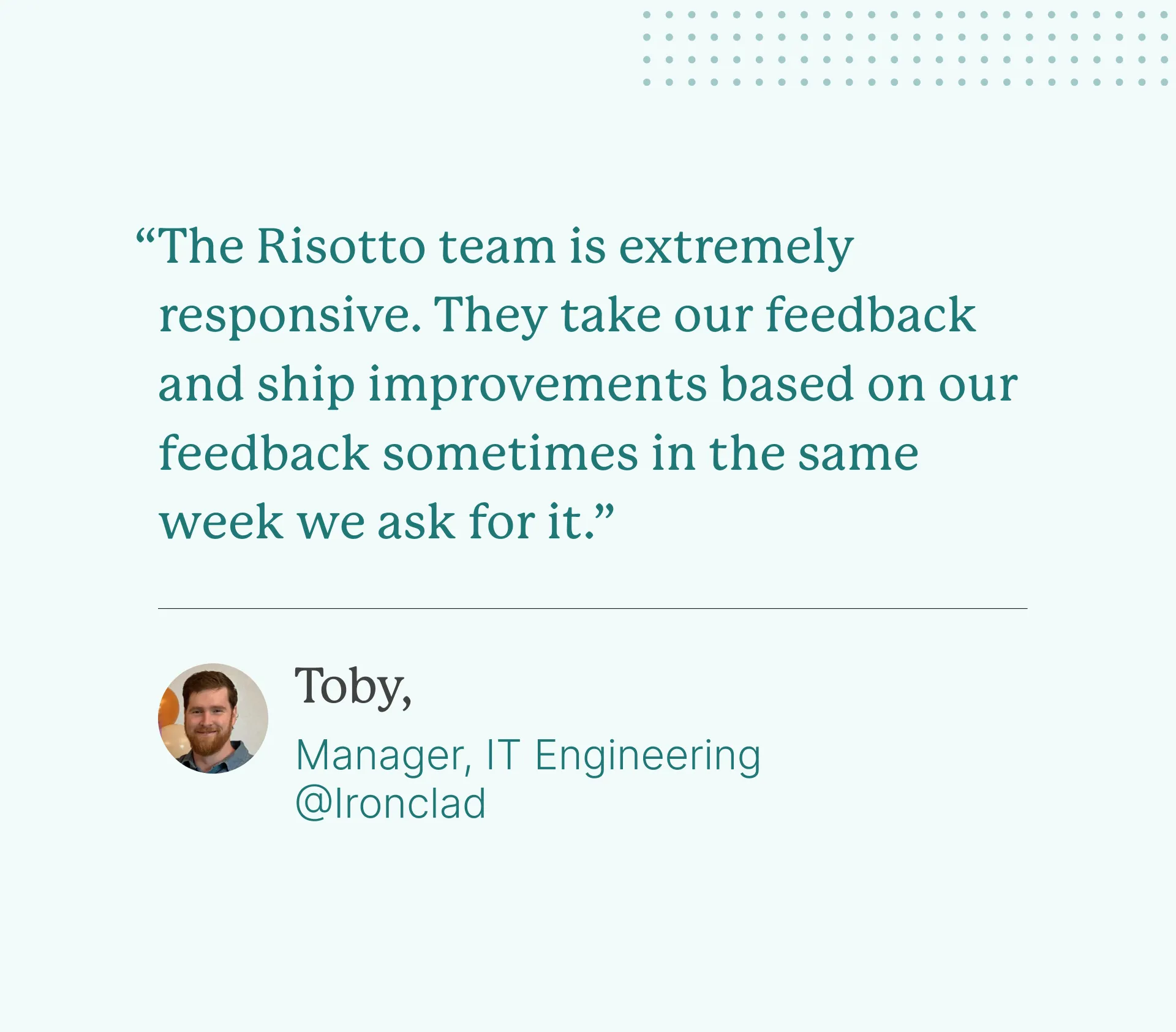 Ironclad’s vision extends beyond IT ticket automation. They’re already leveraging Risotto across HR, Workplace, and Security teams, with plans to continue to deepen their usage of Risotto’s unified, AI-powered system.