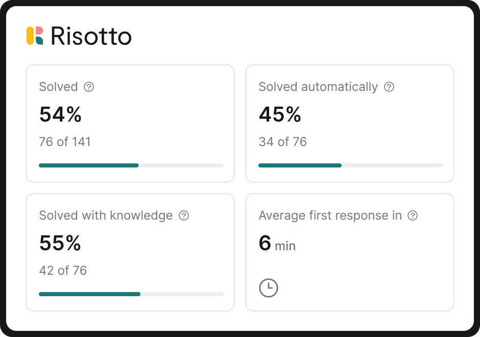 With Risotto handling requests day and night, no question goes unanswered while Victoria's team is offline. "I'll see that six requests came in overnight and Risotto has resolved every general Tier-1 issue that popped up," shares Victoria.