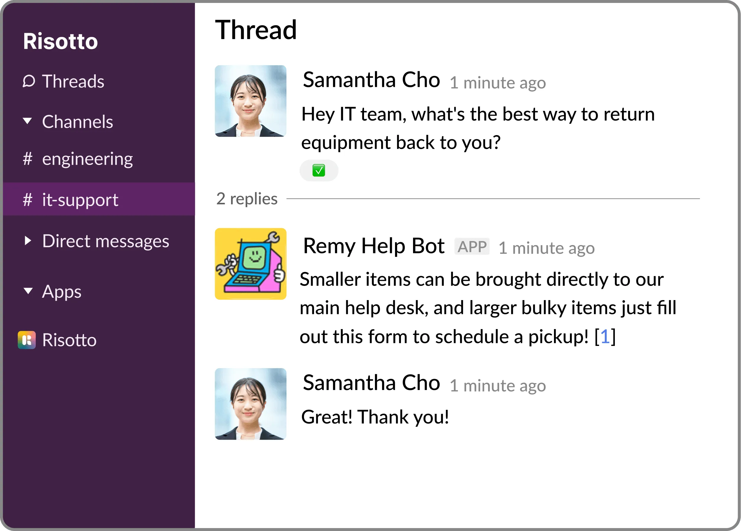 A memorable takeaway from Retool’s story is when exploring ways to enhance IT support operations do not underestimate the impact of thoughtful branding. When using a product like Risotto the possibilities are endless to create a support experience that is uniquely matched to company culture and elevates the overall employee experience.