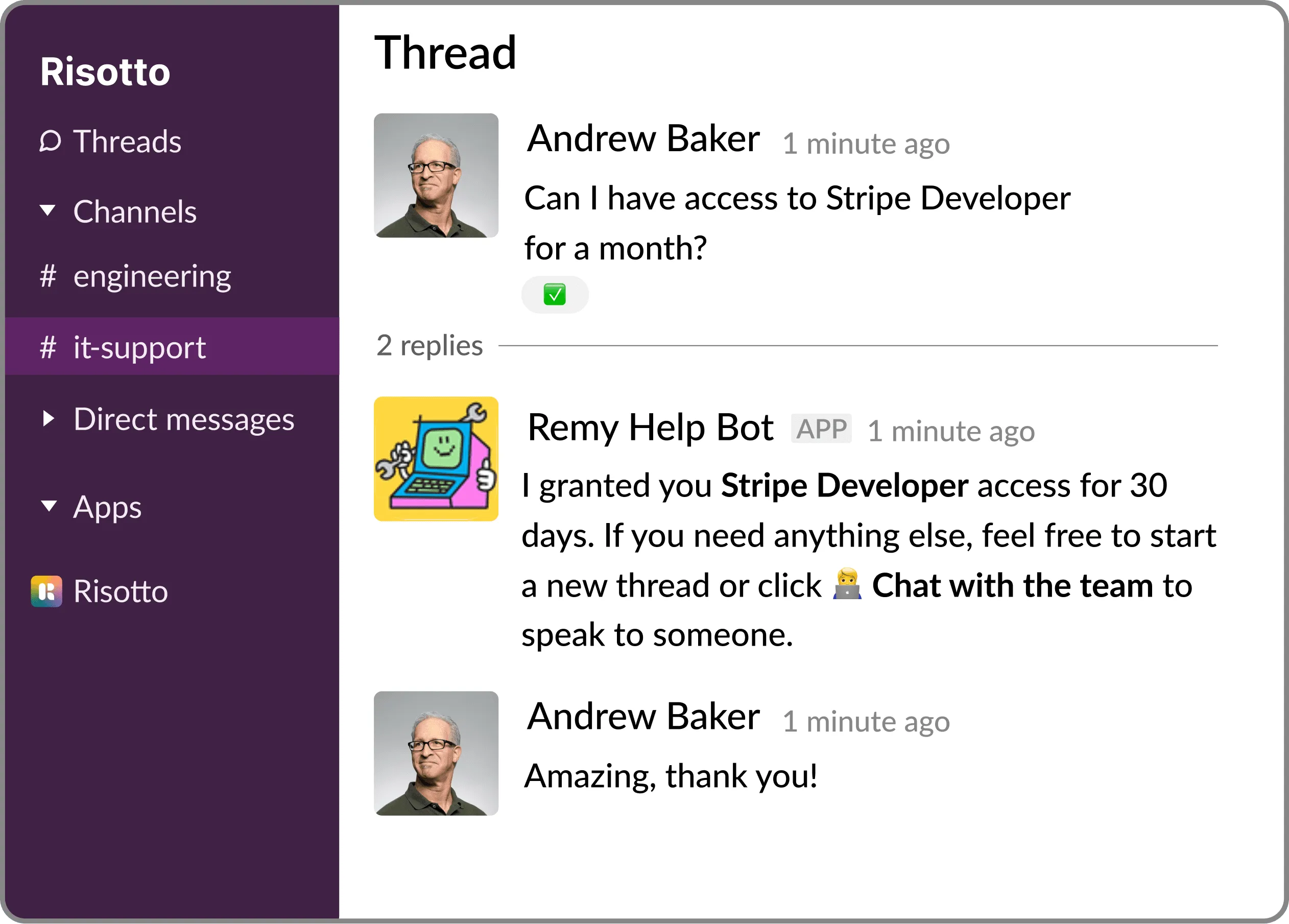 Risotto handles repetitive support requests across tools and teams, so IT gets back to solving real problems, not rerunning the same ones.