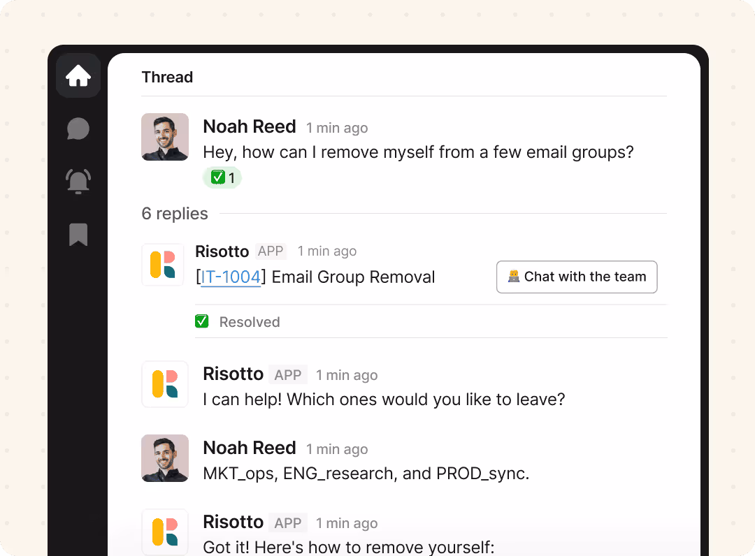 More time for real work. Happier employees who never have to wonder where to ask for help. Risotto makes AI ITSM feel like a natural extension of the tools your company uses.