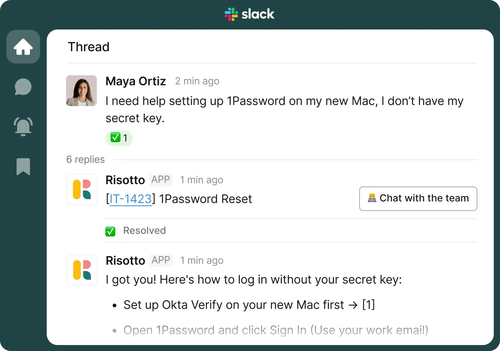 We wanted to implement more standardization and automation in our help desk, but there wasn’t an easy way in Slack without clunky custom work. Risotto helped us do that.”