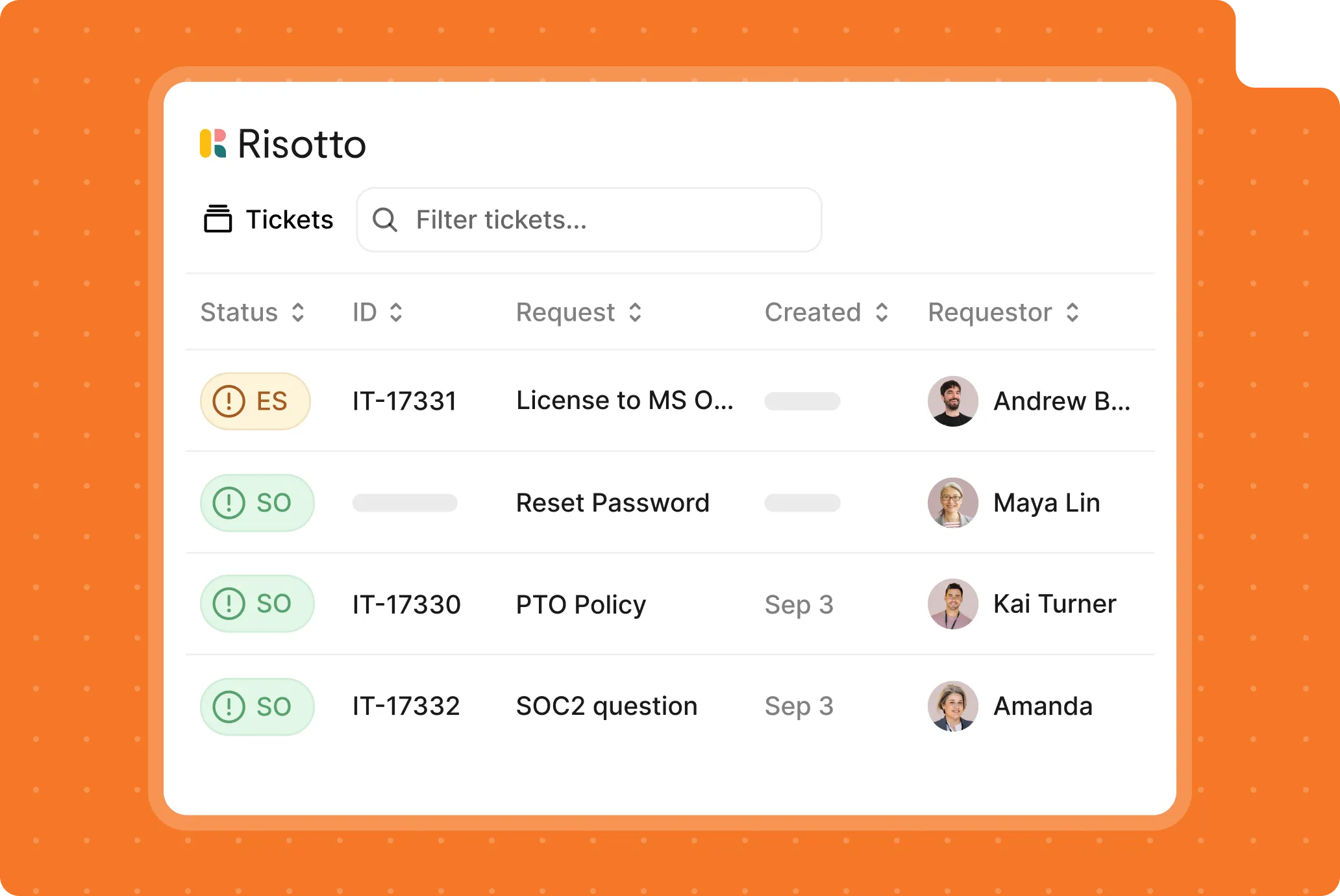 Auto-resolve and route requests for IT, HR, Legal, Finance, and Ops, all using Risotto.